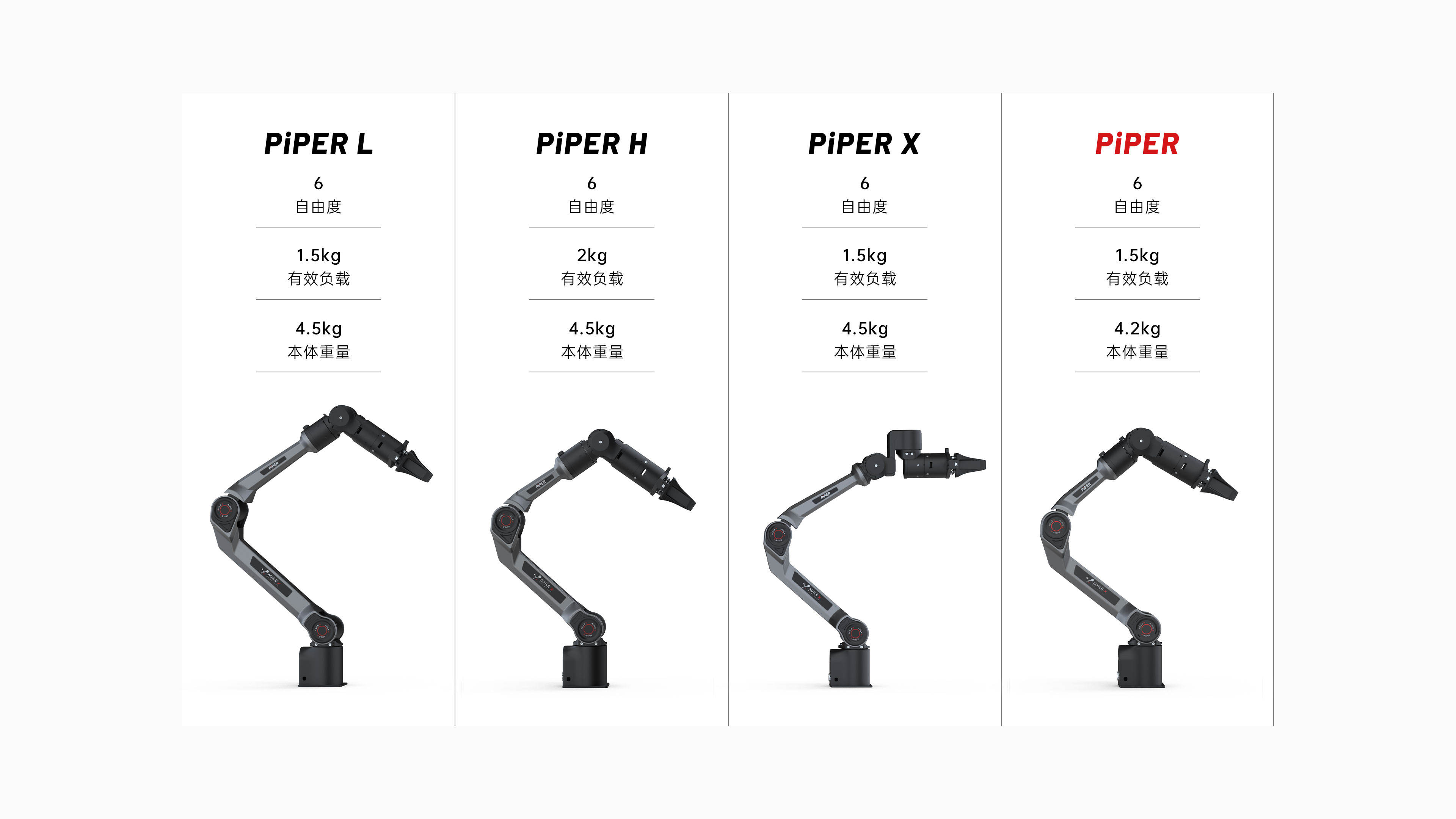 PiPER机械臂整机重量仅4.2kg,却能稳健承载1.5kg负荷,稳定高效的电机系统,使其在保持轻量化的同时,提供强大的动力和稳定的性能,让操作高效可靠。